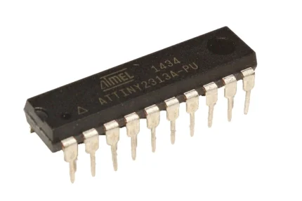 The Atmel ATtiny2313A-PU is an 8-bit AVR microcontroller manufactured by Microchip Technology. Attiny2313a has 20 pins, of which 18 can