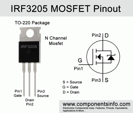 Type Designator: IRF3205 used Type of Transistor: MOSFET Type of Control Channel: N -Channel Pdⓘ – Maximum Power Dissipation: 200